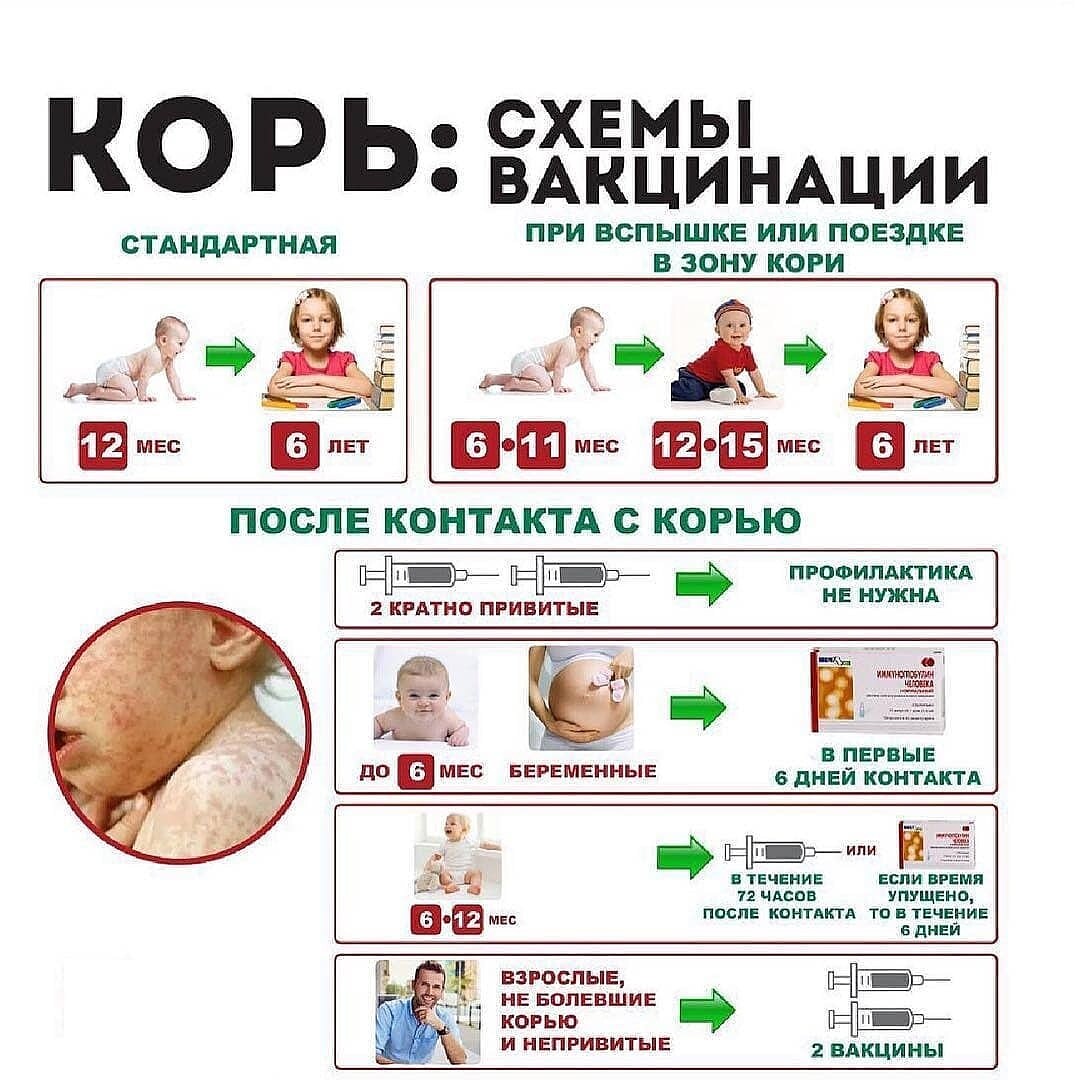 Детям, не привитым против кори, не достигшим прививочного возраста, а также лицам с противопоказаниям к вакцинации, вводится иммуноглобулин человека нормальный не позднее 5-го дня от момента контакта.